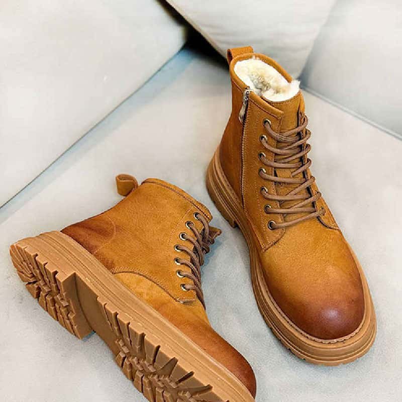 Men’s Sheepskin Fur Snow Boots Genuine Leather